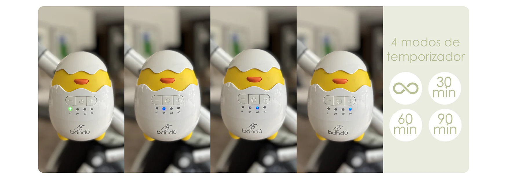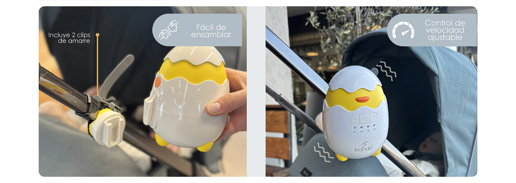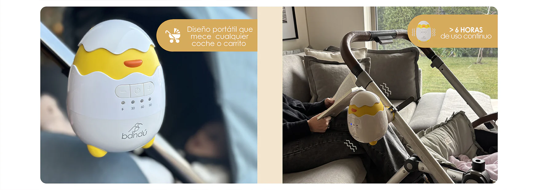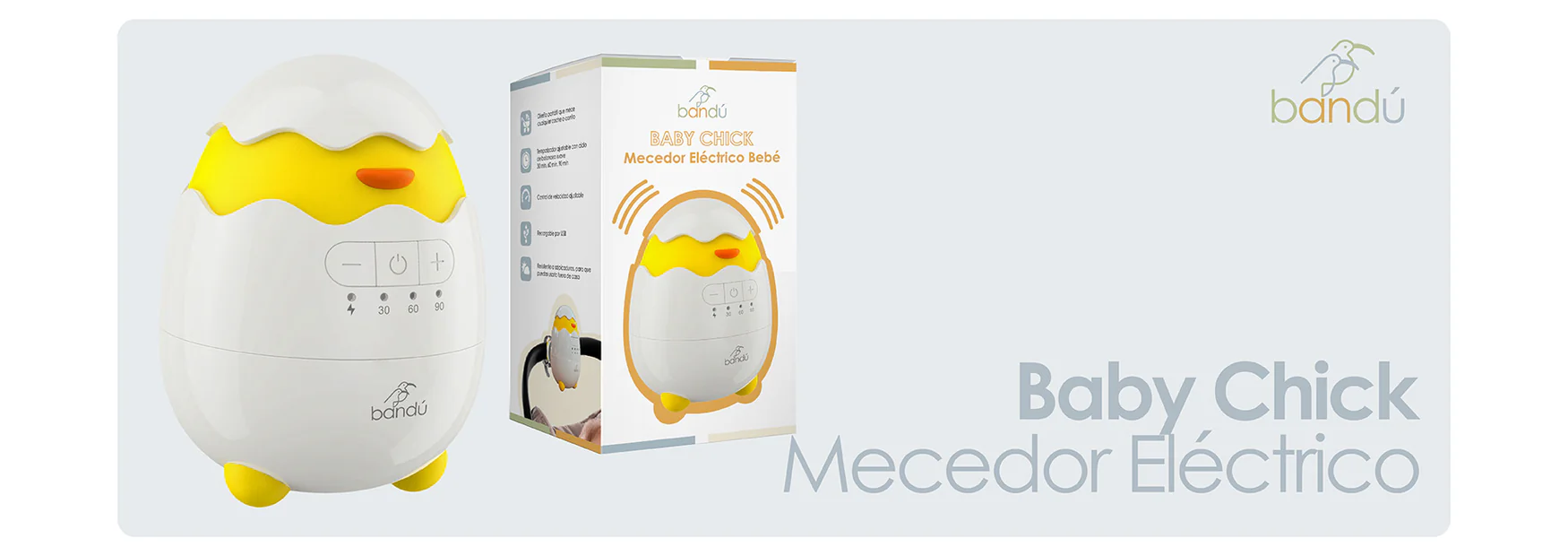 La mecedora eléctrica portátil Baby Chick de Bandú es el compañero ideal para calmar y mantener a tu bebé en movimiento. Se acopla fácilmente al coche o silla de paseo y simula el suave vaivén de tus brazos, ayudando a que tu pequeño se relaje y se duerma plácidamente, mientras tú disfrutas de un momento de respiro. Gracias a su diseño compacto, liviano (solo 0,5 kg) y batería recargable, puedes llevarlo contigo a todas partes: paseos, viajes o siestas en casa.