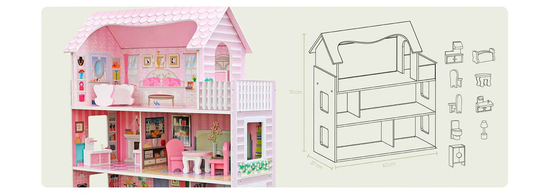 La casa de muñecas clásica de Bandú está diseñada para brindar horas de juego creativo, fomentando habilidades sociales, emocionales y cognitivas en los niños. Fabricada en madera de alta calidad y con detalles encantadores, es el regalo perfecto para acompañar la infancia con historias y juegos simbólicos.