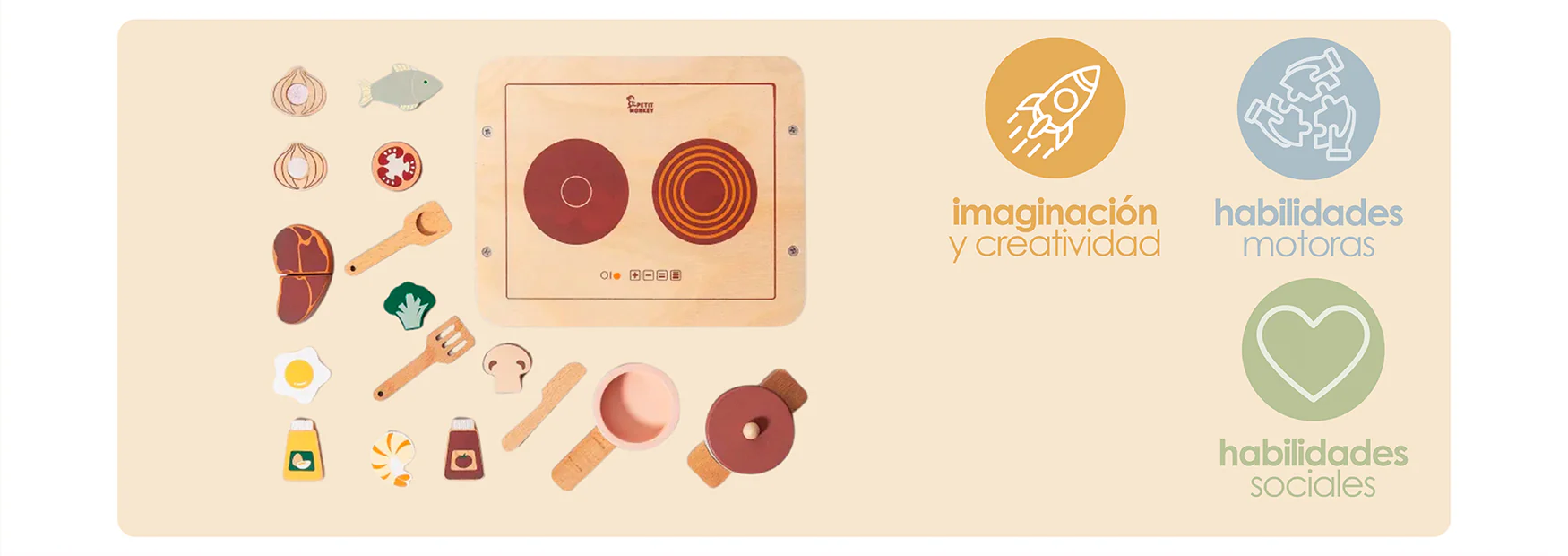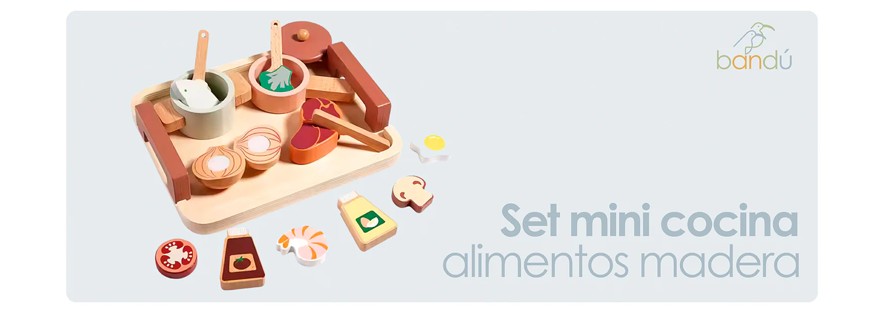 El Set Mini Cocina de Juguete Bandú es perfecto para que niños y niñas disfruten del juego de roles mientras desarrollan habilidades motoras, cognitivas y sociales. Con alimentos, utensilios y cocina incluidos, este set de madera estimula la creatividad y el aprendizaje a través del juego simbólico.