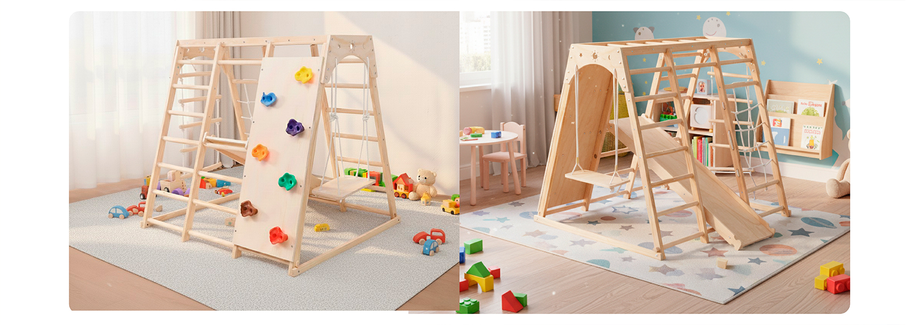• Madera Natural de Primera Calidad: Material robusto, suave al tacto y no tóxico, pensado para la seguridad y resistencia al uso diario.