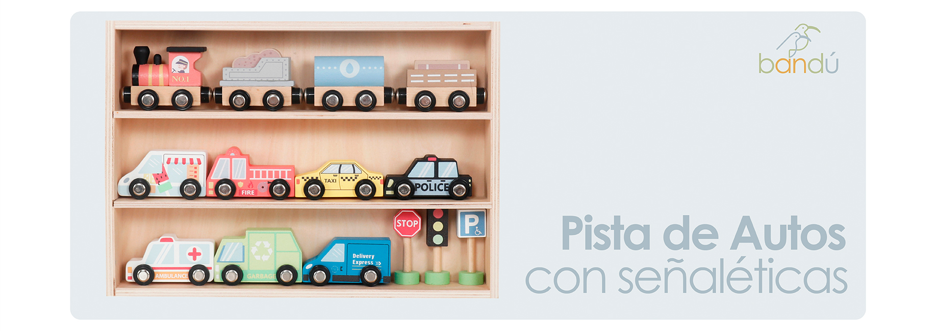 ¡Que empiece la aventura sobre ruedas! El Set de Autos, Tren, Pista y Señaléticas de Madera Bandú es ideal para que niños y niñas desarrollen su imaginación mientras crean sus propias historias de tránsito y transporte. Con piezas móviles, señaléticas y una pista para armar, este set fomenta el juego libre y la exploración del entorno urbano de forma lúdica y educativa. Características destacadas: