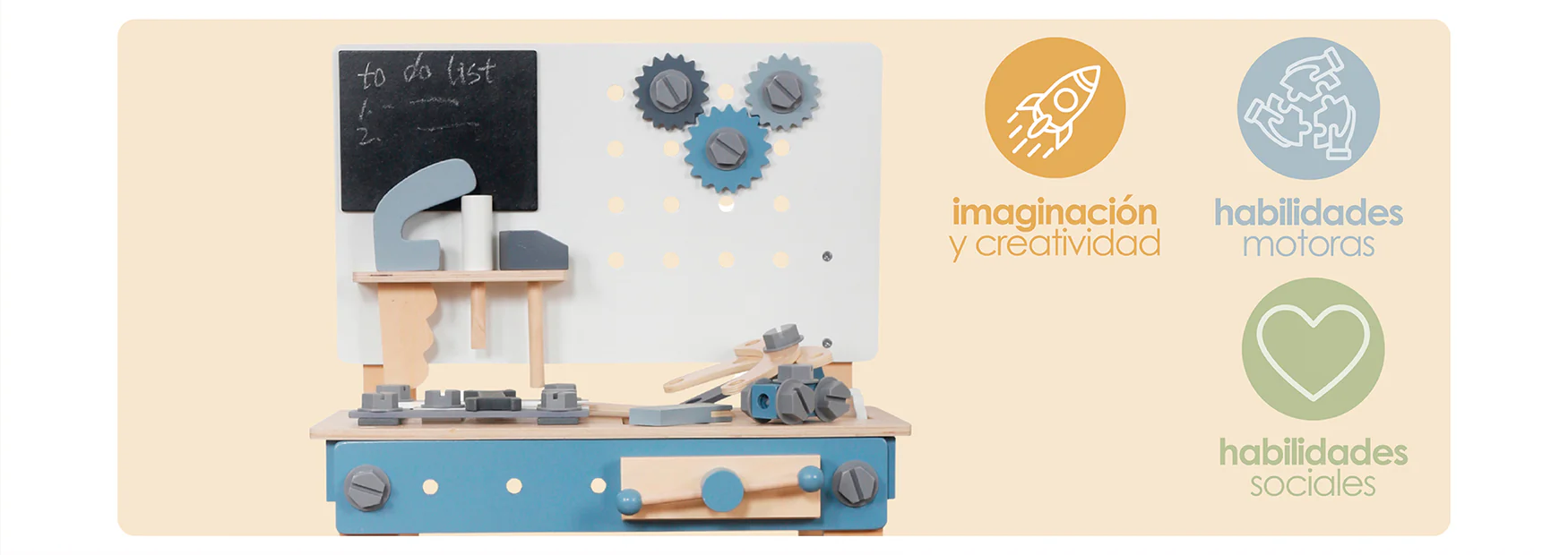 • Banco de trabajo firme y estable, ideal para el uso infantil.