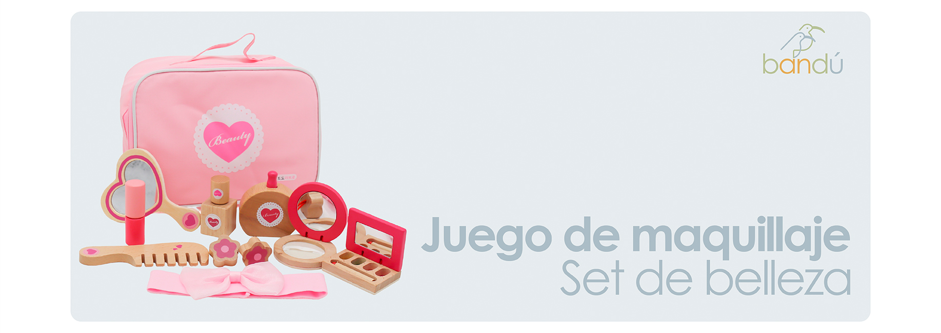 ¡Hora de brillar con estilo! Este encantador set de maquillaje de madera Bandú es el regalo perfecto para que niñas y niños exploren el mundo de la belleza de manera segura y creativa. Diseñado para fomentar el juego simbólico y el desarrollo de habilidades motoras, este juego de tocador es mucho más que un juguete: es una herramienta de aprendizaje y diversión. Características destacadas: