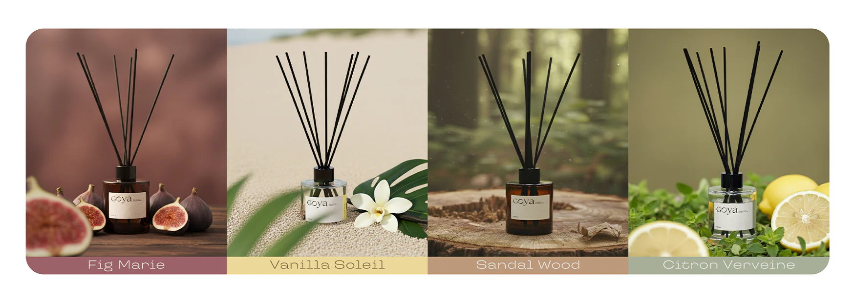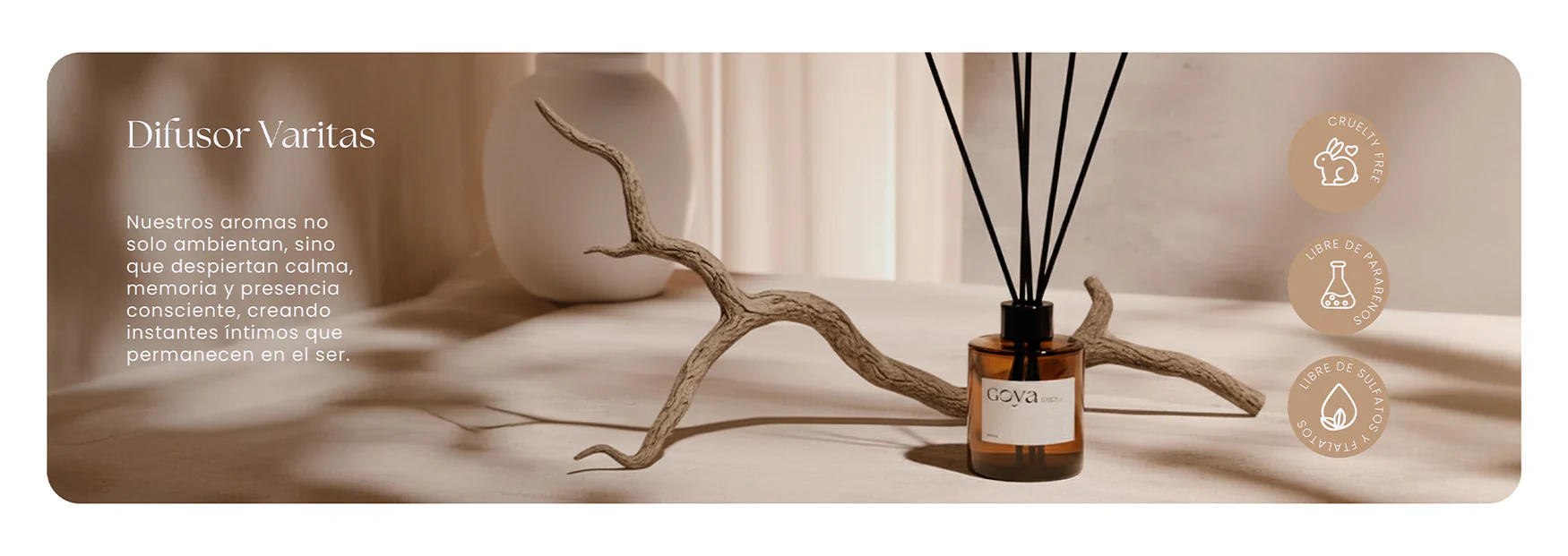 En GOYA, cada fragancia es más que un aroma: es una invitación a habitar el presente. Inspirados en la alta perfumería y guiados por la autenticidad, diseñamos experiencias sensoriales que transforman el aire y elevan el entorno. Nuestros aromas no solo ambientan, sino que despiertan calma, memoria y presencia consciente, creando instantes íntimos que permanecen en el ser.