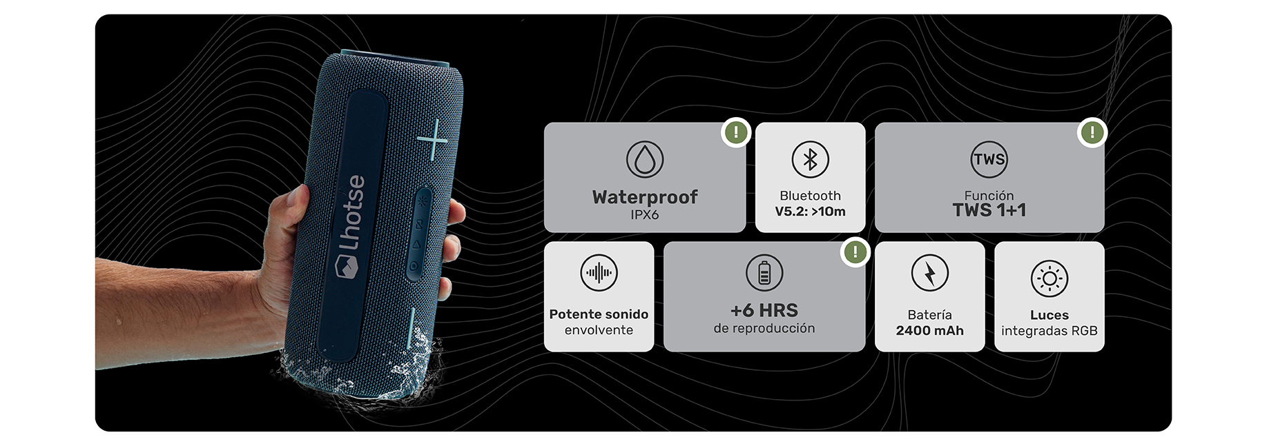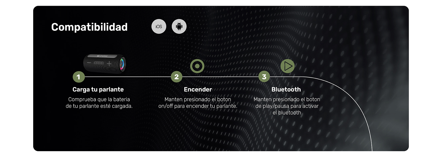 - Emparejamiento TWS: Conecta dos parlantes para sonido estéreo.