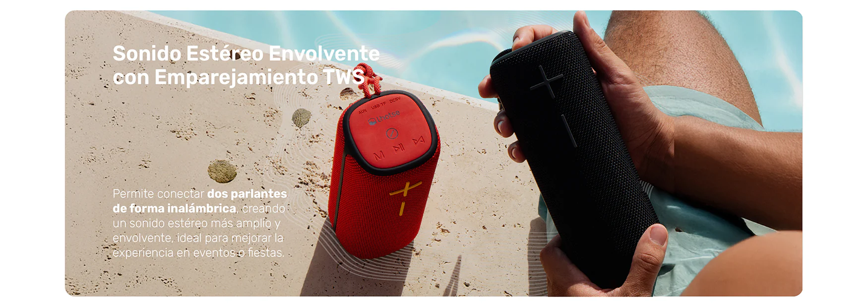 • Emparejamiento TWS: Conecta dos parlantes para sonido estéreo.