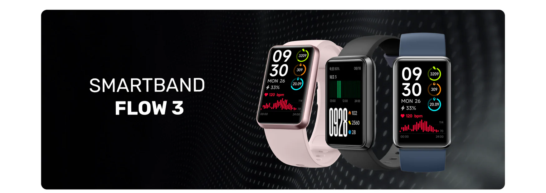 Personaliza tu smartband con más de 100 fondos de pantalla disponibles, asegurando que se adapte a tu estilo y estado de ánimo. Además, con más de 100 modos deportivos y reconocimiento automático de ejercicio, como running, caminata, ciclismo y más, la Smartband Flow 03 es tu compañera ideal para cualquier actividad física.
