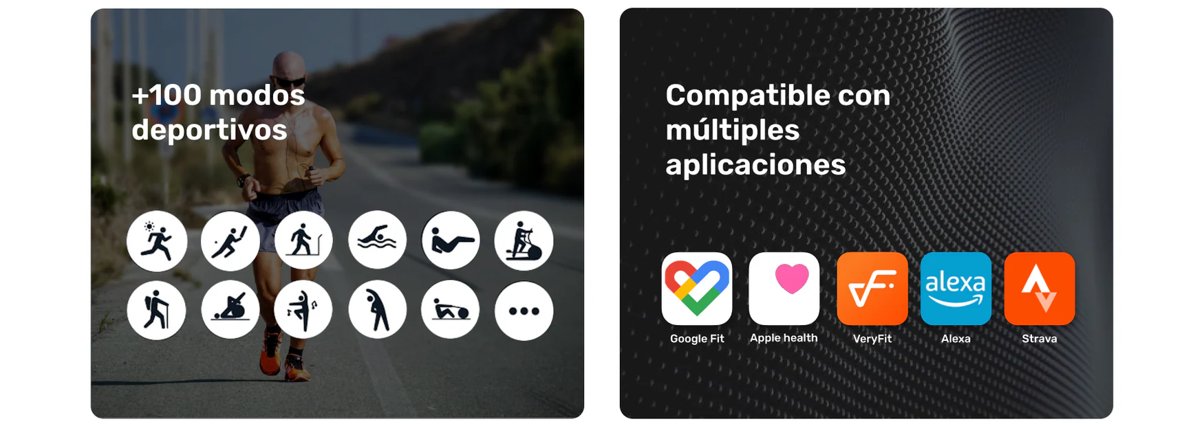 • Mediciones: Ritmo cardíaco, calidad de sueño, calorías quemadas, pasos, distancia recorrida, presión arterial, oxígeno en la sangre, etc.