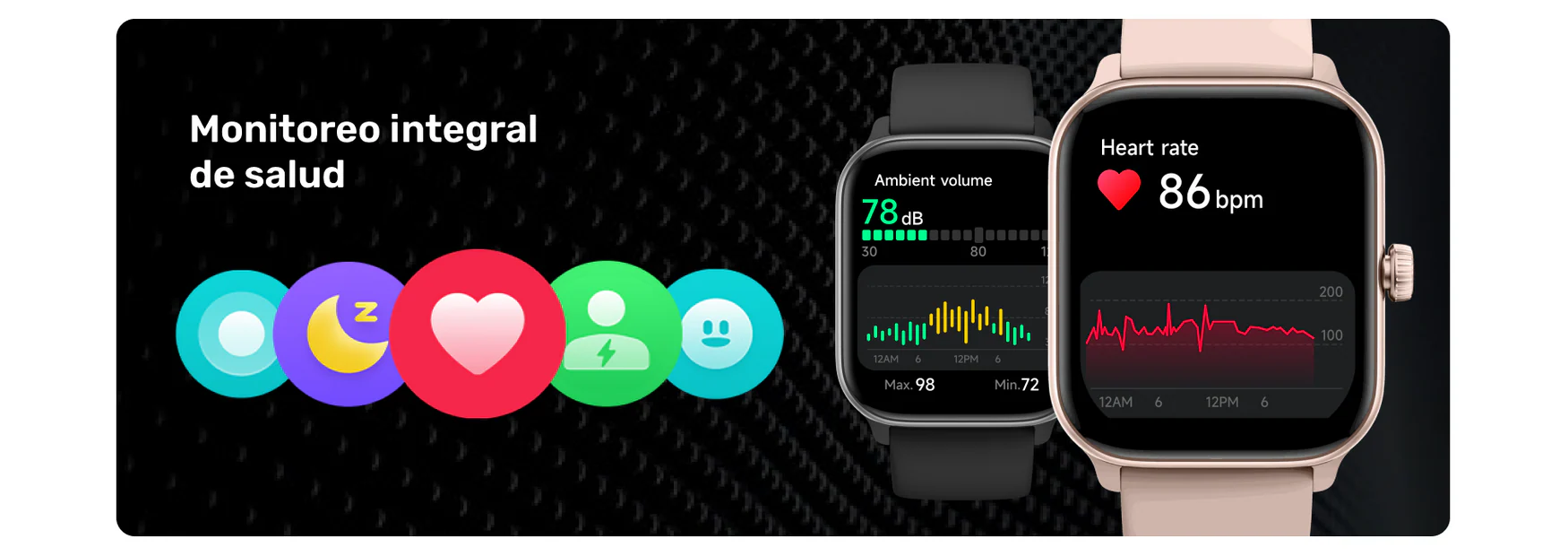 - Monitoreo de actividades diarias: Salud, sueño, pasos, calorias, distancia, estres