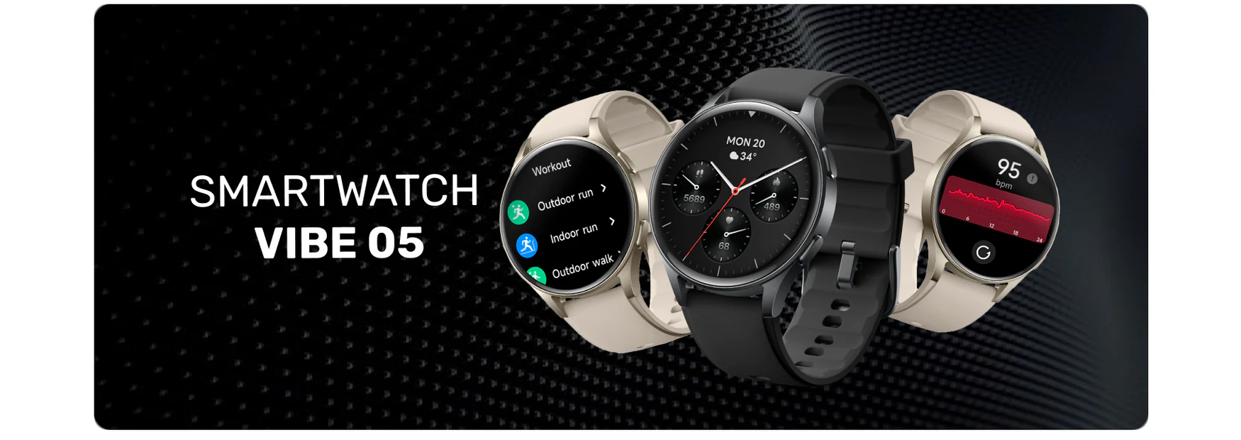 El Smartwatch Vibe 05 eleva tu estilo de vida activo con más de 110 modos deportivos integrados, todo dentro de un diseño elegante y minimalista. Con una pantalla AMOLED HD vibrante de 1,32" y una variada selección de más de 100 fondos de pantalla, es tan elegante como funcional.