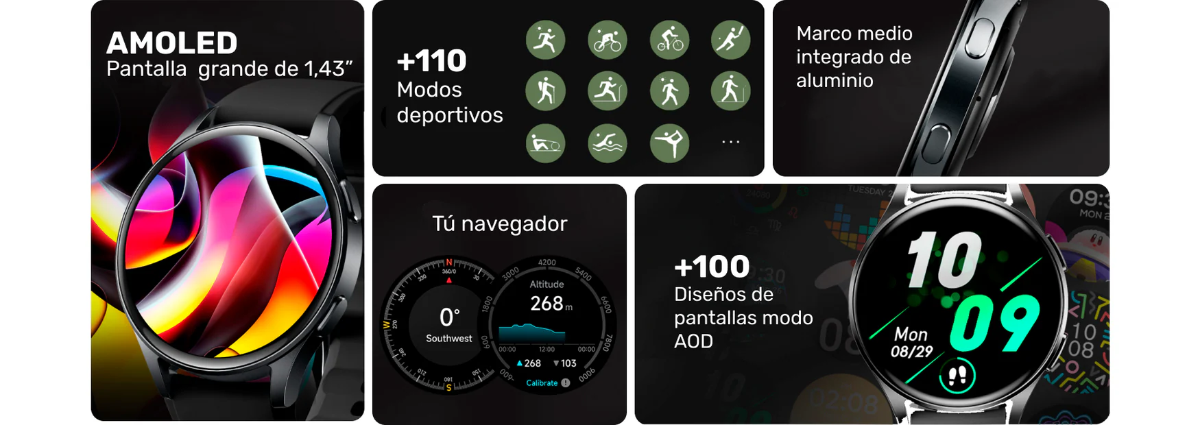 • +110 modos deportivos integrados, natacion, running, trecking, padel, etc.