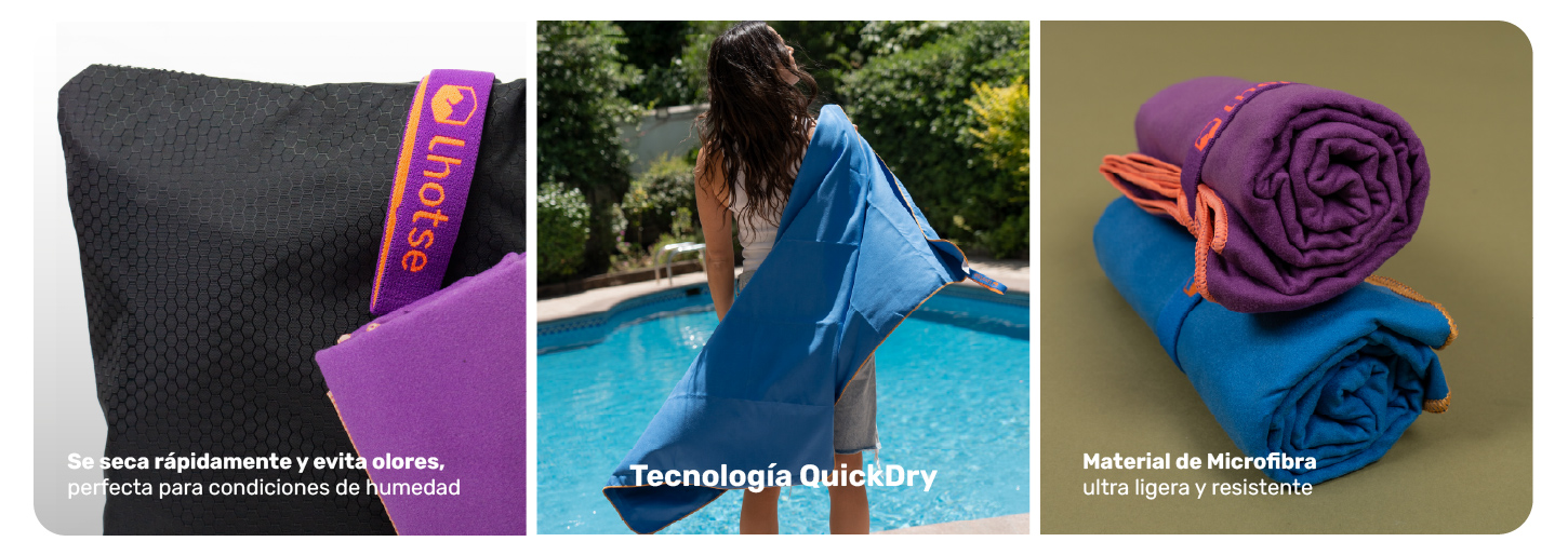 Descubre la toalla de microfibra QuickTrek con tecnología QuickDry, ideal para camping, trekking y aventuras al aire libre. Compacta, ligera y resistente, se seca rápidamente y evita olores, perfecta para condiciones de humedad. Incluye bolsa de malla y tira para colgado para mayor comodidad. Medidas: 130x80 cm. Tu compañera esencial para vivir cada aventura al máximo.