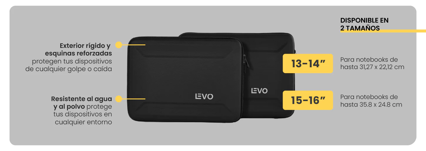 Tu notebook es más que un dispositivo, es el centro de tus ideas, tu compañero de estudio, trabajo y creatividad. La Funda HardShell para Notebook Levo ha sido diseñada para acompañarte en cada desafío, brindando una protección superior sin sacrificar comodidad ni estilo.