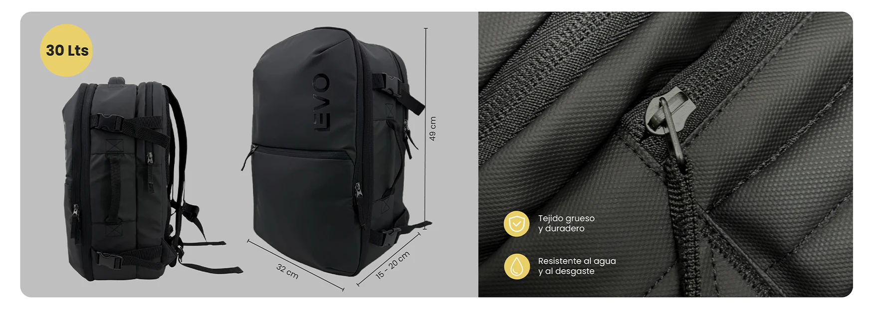 Descubre la libertad de viajar con estilo, comodidad y funcionalidad con la Mochila de Viaje AeroSuite 30L de LEVO. Diseñada para acompañarte en cada aventura, esta mochila combina un diseño elegante y aerodinámico con materiales de alta resistencia, pensados para soportar el ritmo de tus días más intensos.