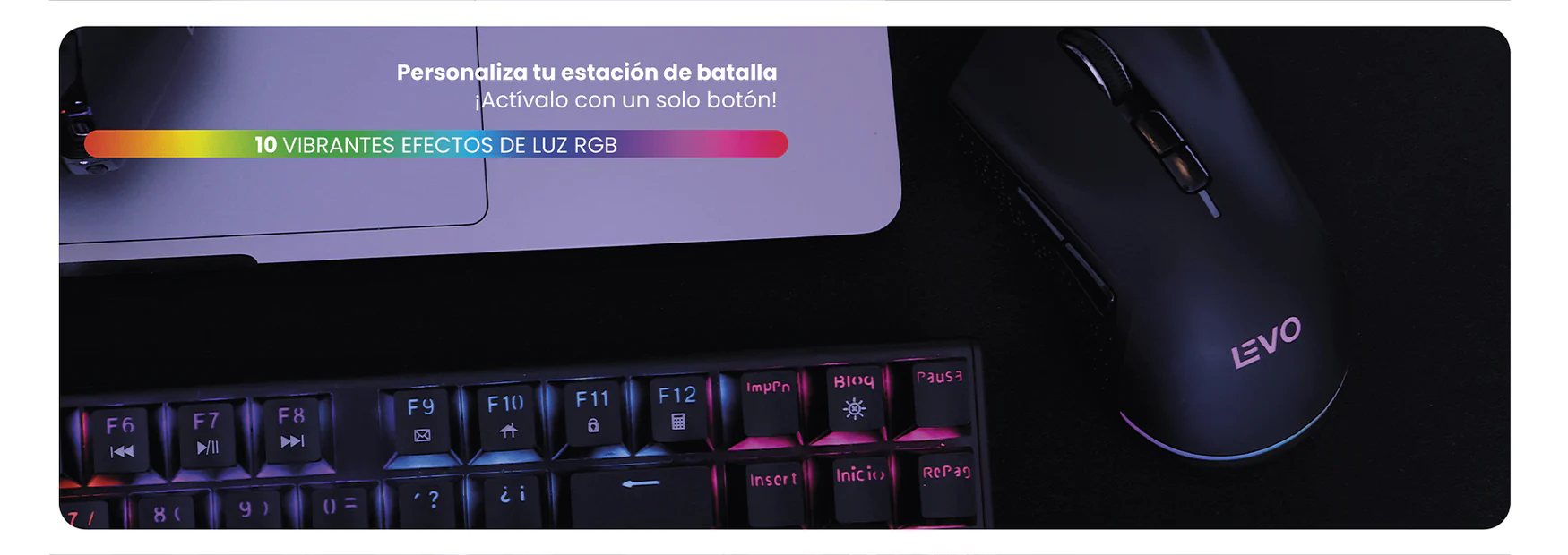 Personalización y estilo: Incluye 10 efectos de luz RGB para personalizar tu setup.