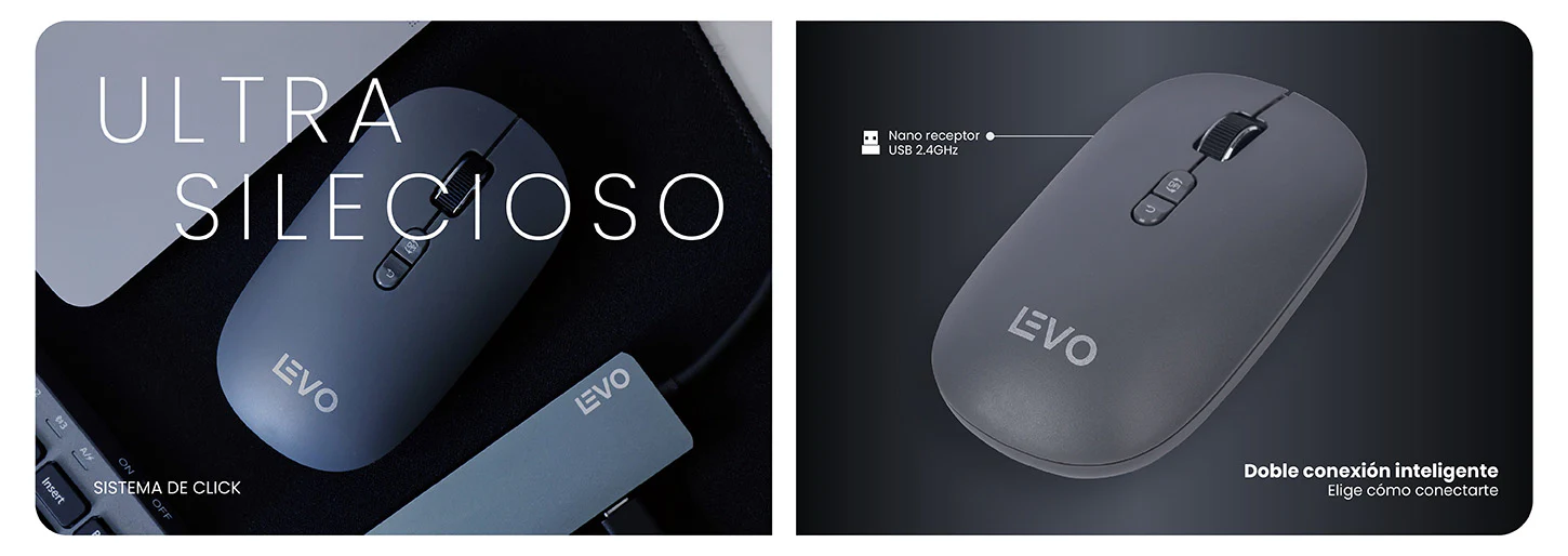 Su forma curva y liviana se adapta cómodamente a tu mano, reduciendo la fatiga durante largas jornadas. Además, su sistema de clic silencioso te permite trabajar en espacios compartidos o bibliotecas sin interrumpir a nadie.