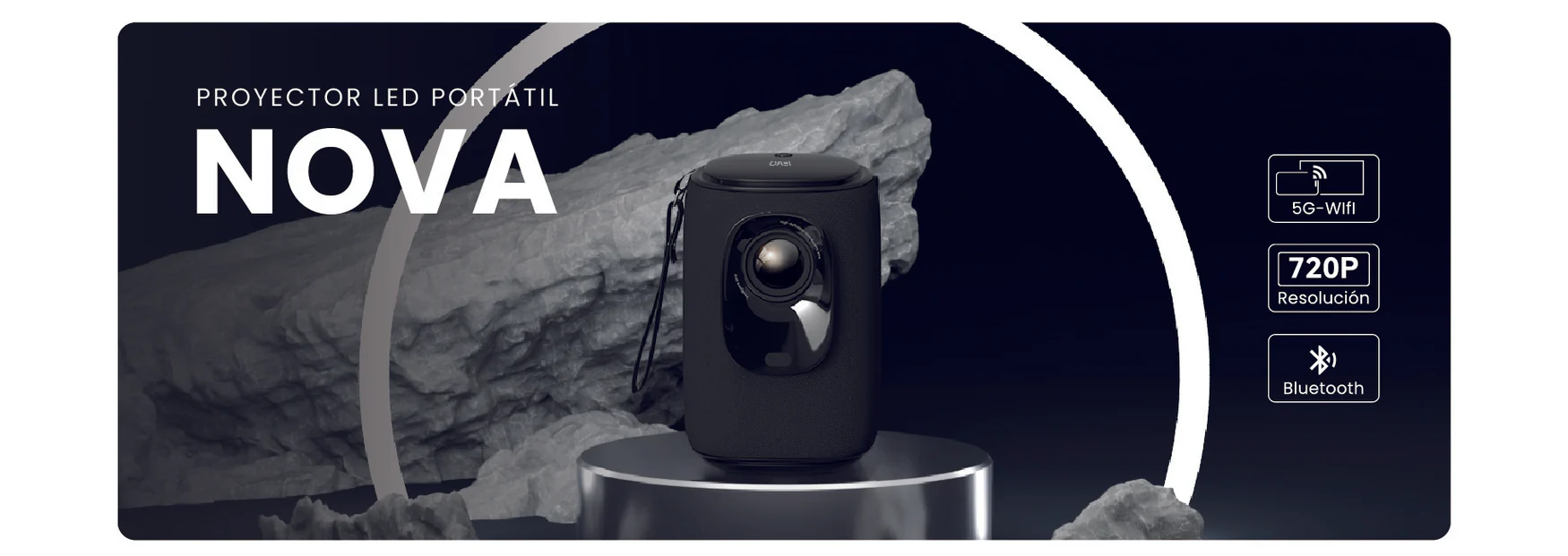Disfruta de una experiencia visual de alta calidad con el Proyector Portátil Smart Nova de LEVO, diseñado para adaptarse a cualquier espacio con imágenes nítidas y sonido envolvente.