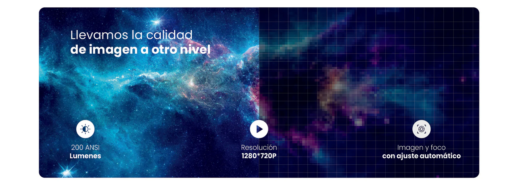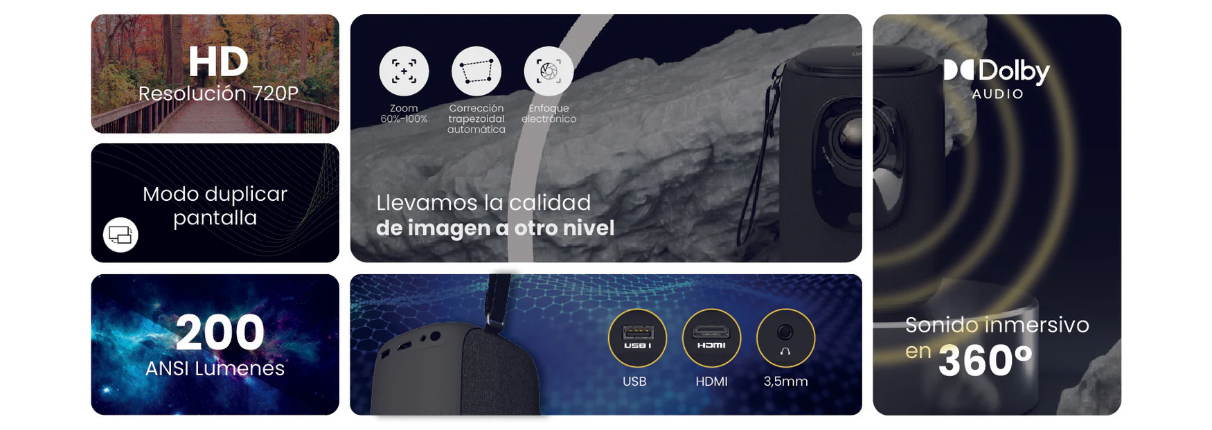 • Compatible con celulares, permitiendo proyectar contenido desde tu smartphone sin complicaciones.