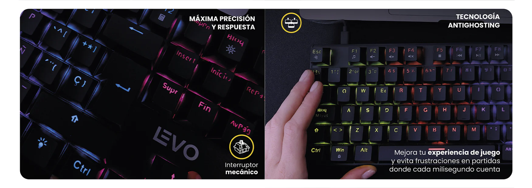 El teclado mecánico gamer LEVO NovaBlade está diseñado para quienes buscan un equilibrio perfecto entre rendimiento, durabilidad y estética. Con switches mecánicos de alta precisión, cada pulsación se siente firme y rápida, ideal para reacciones instantáneas en juegos competitivos o una experiencia de escritura superior.