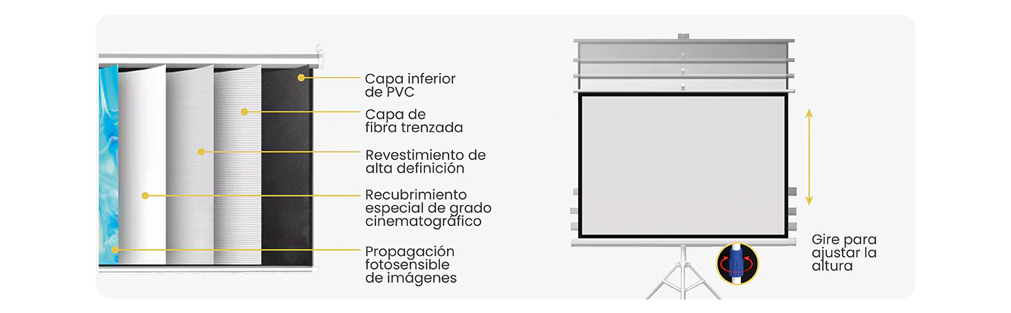 ¡Ligero y portátil! Telón mural de proyector con trípode de 80 pulgadas perfecto para todo tipo de actividades. Tardes de cine en casa, para presentaciones en la oficina, para hacer clases o para tus paseos al exterior.