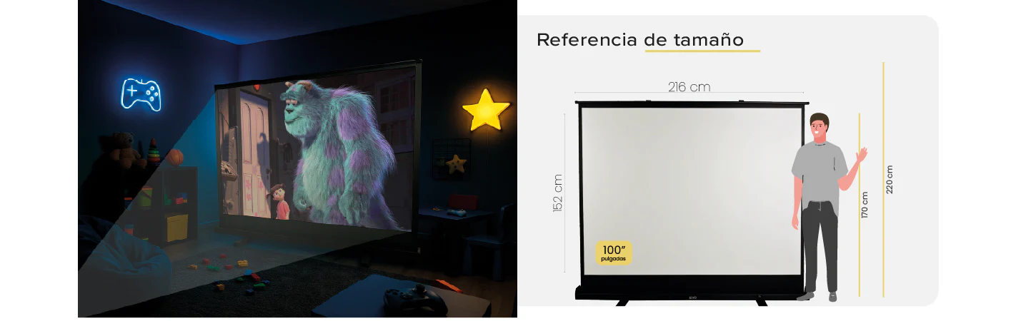 • Tamaño de pantalla: 100 pulgadas (200 × 150 cm).