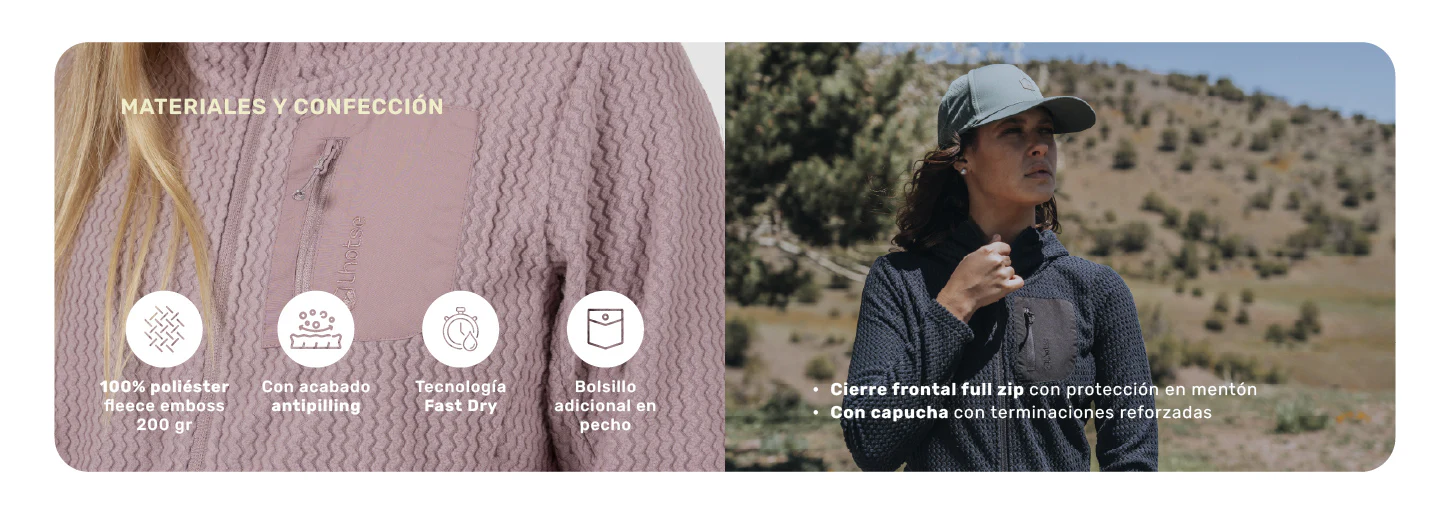 La segunda capa LOBUCHE combina calidez, ligereza y diseño funcional para acompañarte en climas fríos o actividades outdoor. Su tejido polar técnico ofrece abrigo sin perder transpirabilidad, ideal para usar como capa intermedia o como chaqueta ligera en el día a día.