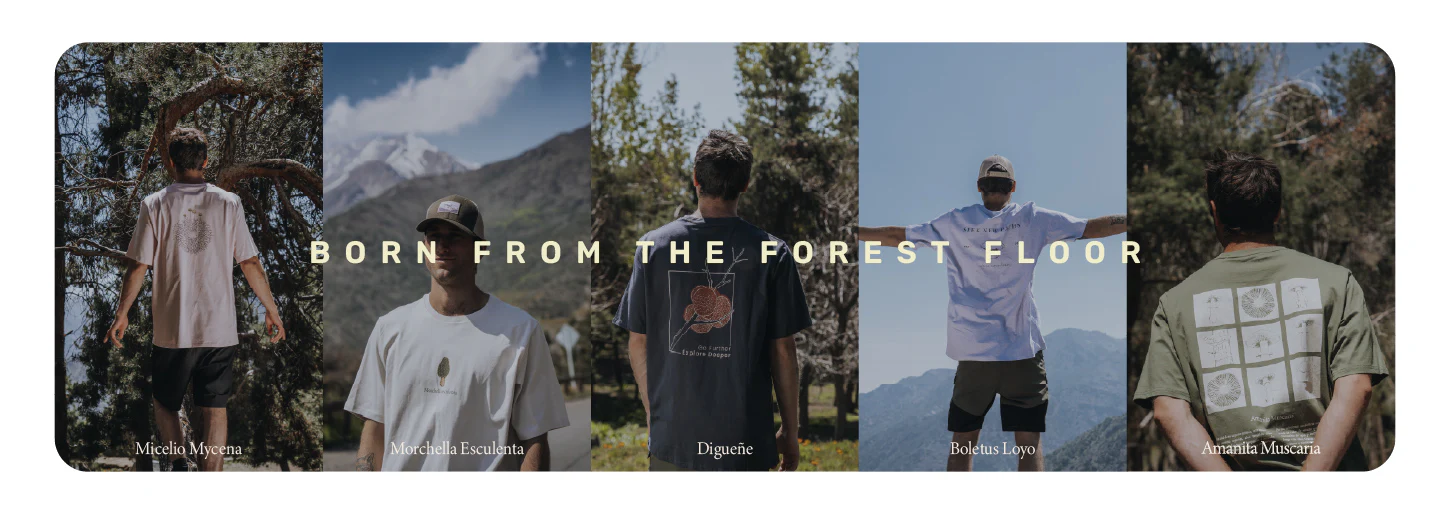 Diseñada para quienes exploran más allá de lo evidente, la polera Micelio Mycena se inspira en la red invisible que conecta la vida en el bosque, recordándonos que lo esencial suele estar bajo la superficie.