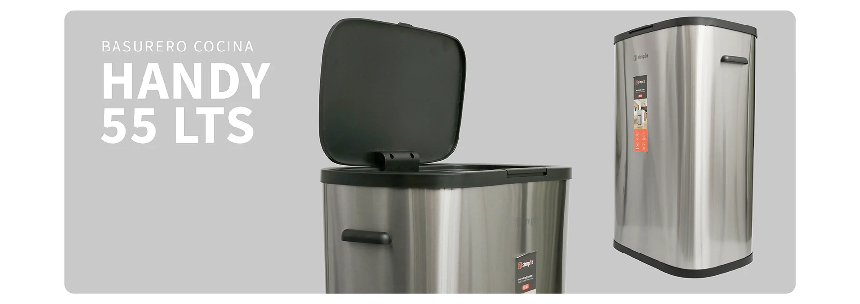 El basurero de cocina Simplit Handy de 55 litros combina estilo y funcionalidad en un diseño robusto. Está equipado con un botón presionable facilitando un acceso rápido y sencillo. Fabricado en acero inoxidable anti huellas dactilares, mantiene un aspecto limpio y elegante en todo momento. Su mecanismo de cierre suave y silencioso, junto con el sistema hermético que previene olores, lo hace ideal para cocinas, hoteles, restaurantes y oficinas. Simplit ofrece innovación y diseño superior para mantener tus espacios limpios y frescos.