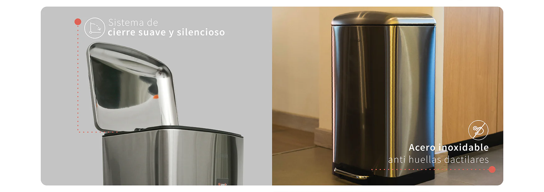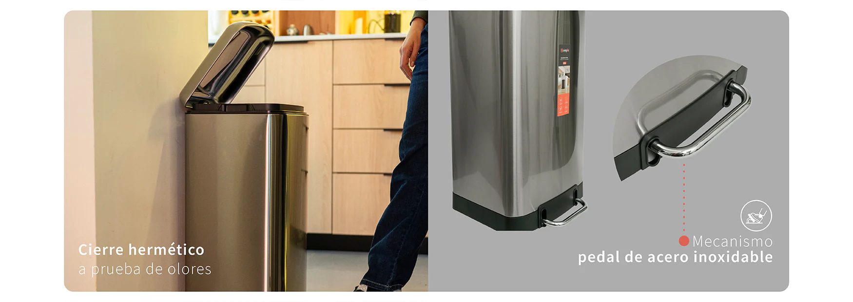 El basurero pedal de cocina Simplit Iron de 40 litros es la solución perfecta para mantener cualquier espacio limpio y ordenado. Su contenedor interior extraíble facilita la limpieza, mientras que su acabado en acero inoxidable anti huellas dactilares asegura que siempre luzca impecable. Con un sistema de cierre suave y silencioso, un mecanismo de pedal fácil de usar y un cierre hermético que previene olores, este basurero es ideal para cocinas, hoteles, restaurantes y oficinas. Simplit te ofrece funcionalidad y estilo en cada detalle.