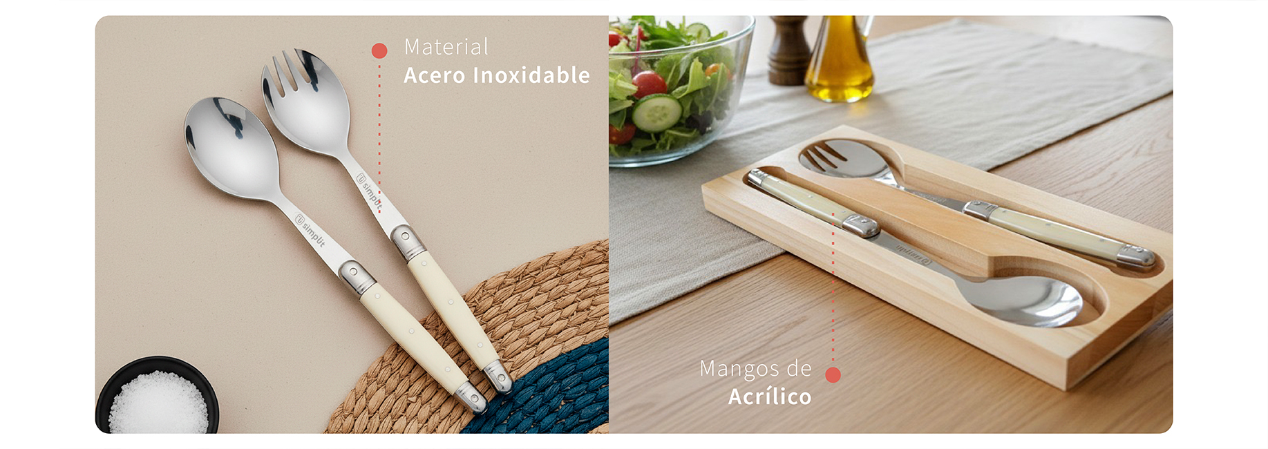 Set de Cucharas Ensalada Versalle Acero Inoxidable Simplit