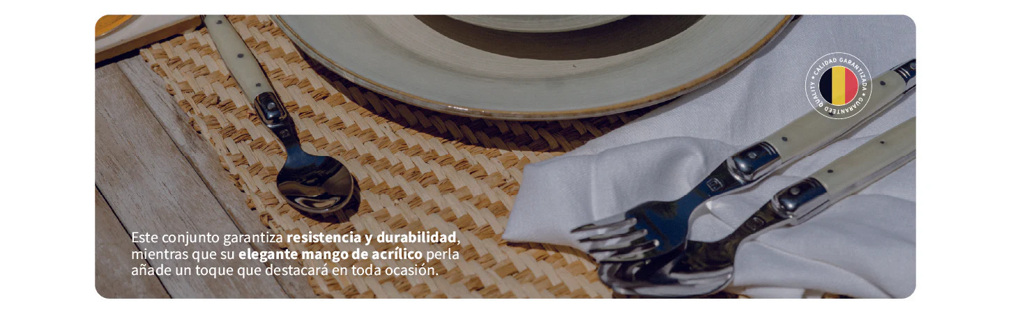 Renueva tu cocina con el Set de Cubiertos Versalle de Simplit, diseñado para quienes buscan combinar estilo y funcionalidad en su mesa. Este conjunto de 24 piezas, fabricado en acero inoxidable de alta calidad, garantiza resistencia y durabilidad, mientras que Su elegante mango de acrílico perla añade un toque cómodo que destacará en cualquier ocasión. Perfecto para uso diario o eventos especiales, su diseño moderno y refinado se adapta a todas las decoraciones de cocina. Además, es apto para lavavajillas, asegurando comodidad y practicidad. Eleva tus comidas con la calidad y estilo que solo Simplit puede ofrecer.