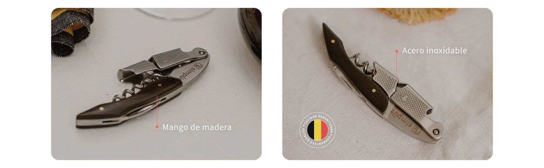 Descubre el sacacorcho ideal para tu cocina con el descorchador sommelier de Simplit. Elegante, funcional y de alta calidad, este accesorio combina diseño estético con practicidad para abrir tus botellas de vino de manera rápida y segura. Perfecto para amantes del vino que buscan renovar su cocina con accesorios modernos y duraderos. ¡Haz de cada momento especial una experiencia perfecta!