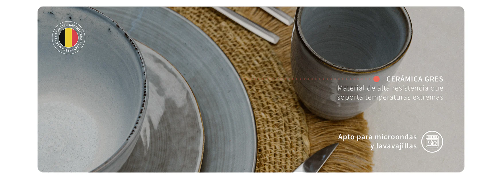 Renueva tus comidas con el juego de loza Amalfi , diseñado en un sofisticado color azul grisáceo que aporta calma y estilo a cualquier ocasión. Fabricado en cerámica gres de alta calidad, este conjunto combina durabilidad y belleza, ideal tanto para el uso diario como para momentos especiales.