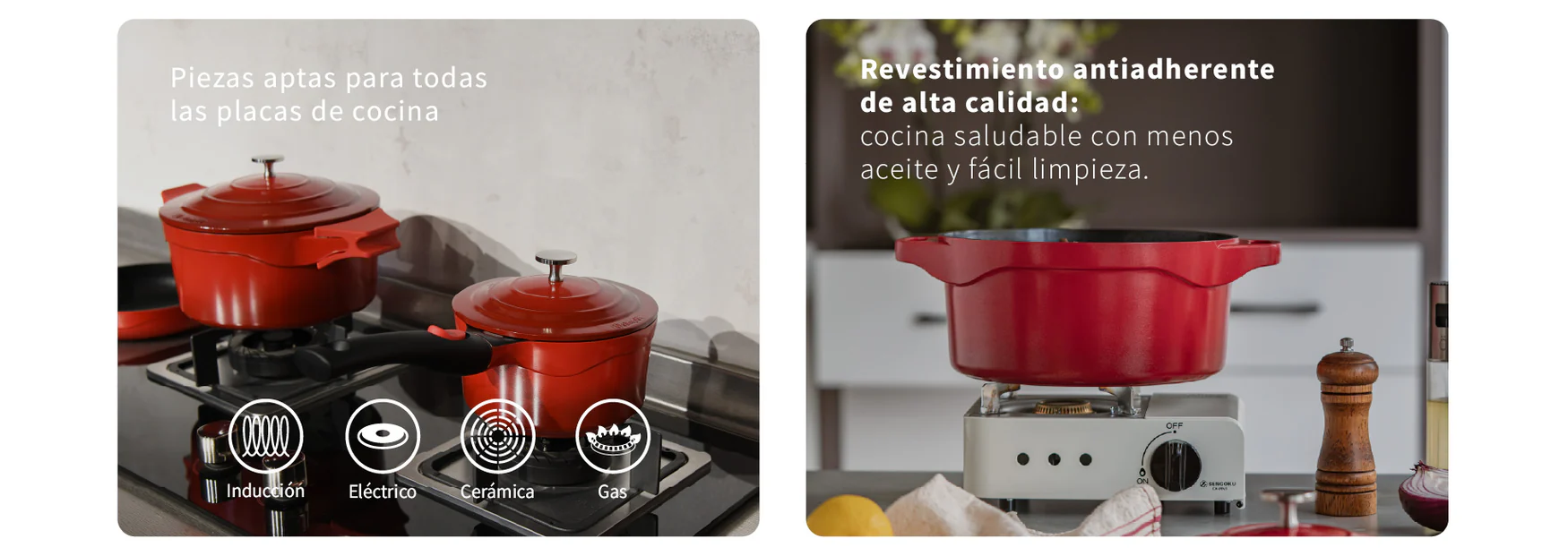 • Revestimiento interior antiadherente con cerámica negra: Fácil limpieza y cocción saludable.