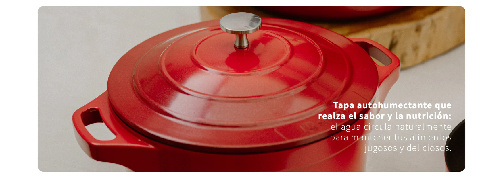 Gracias a su tecnología de circulación auto humectante, su tapa permite que los jugos naturales se redistribuyan en los alimentos, potenciando los sabores y manteniendo los nutrientes. Además, es apta para horno, lo que la convierte en un utensilio versátil para cocinar y servir directamente en la mesa con estilo.