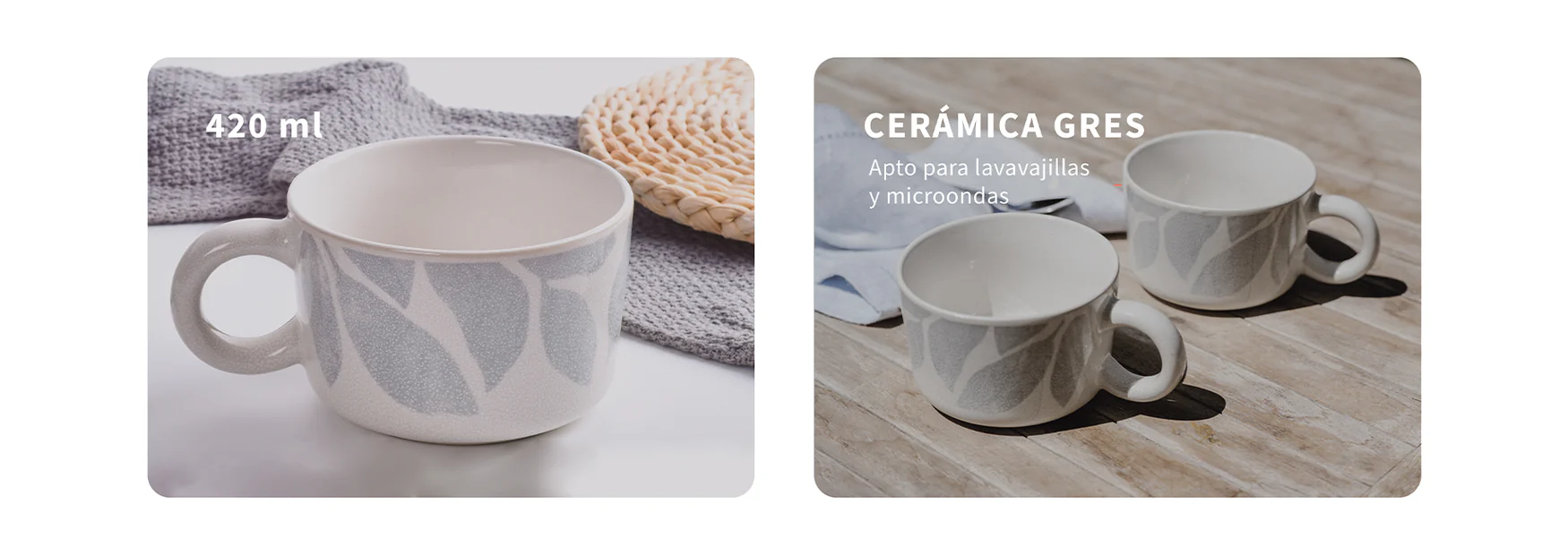 Fabricadas en cerámica de alta calidad, combinan durabilidad con un diseño cómodo que se adapta a cualquier estilo de mesa. Cada sorbo será un reflejo de buen gusto y calidez.