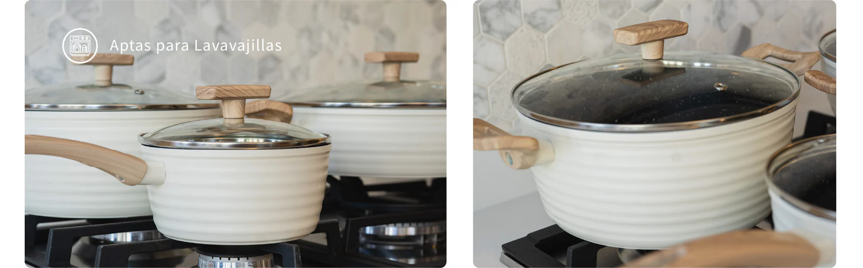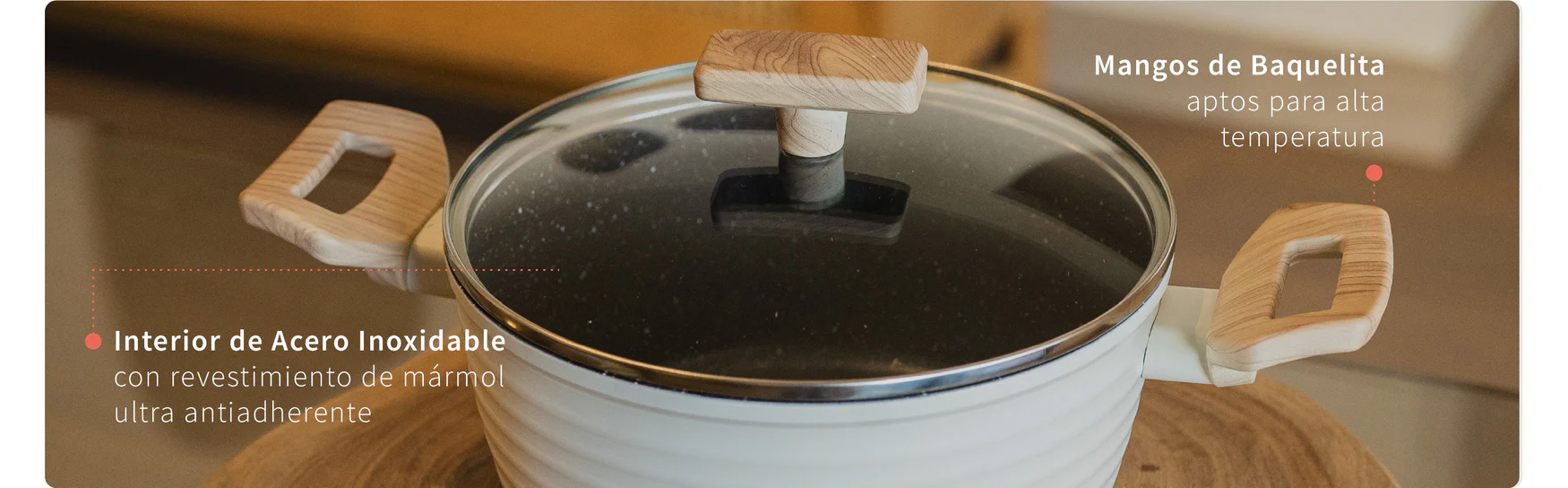 • Mangos: Baquelita con agarre seguro, apta para altas temperaturas