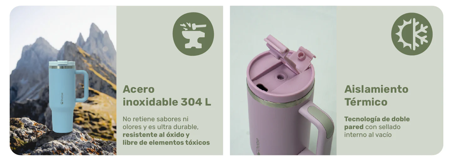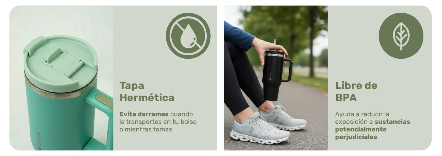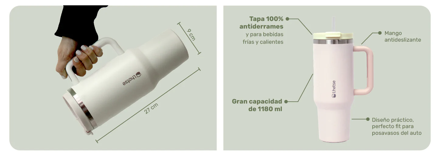 Mantén tus bebidas favoritas frías o calientes durante mucho tiempo, asegurando que cada sorbo sea tan fresco como el primero. Con nuestro Tumbler de 1180 ml, la comodidad y el estilo se fusionan para acompañarte en cada momento de tu vida diaria.